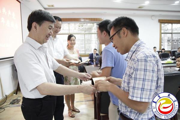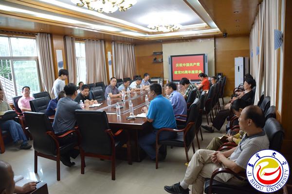 本网讯(记者胡建文 学生记者石慧琳)7月1日是党的生日。6月30日下午,我校在吉首校区凤凰楼二会议室和张家界校区会议室同步召开庆祝中国共产党建党95周年座谈会。校党委书记游俊,校长白晋湘,副校长钟海平、王绯与党委部门负责人代表、基层党组织负责人代表、党建研究中心代表、优秀党务工作者代表、优秀党员代表、特邀党建组织员代表、离退休党员代表、慰问老党员和困难党员部分对象济济一堂,畅所欲言。吉首校区座谈会由钟海平主持。