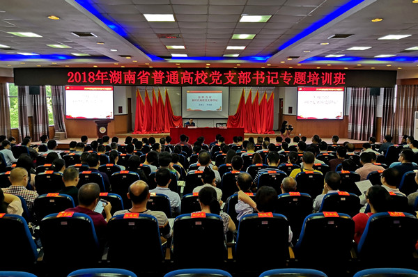 9月14日,2018年全省高校党支部书记专题培训在我校砂子坳校区模拟法庭举行。我校党委书记游俊,党委委员、副校长钟海平、黄昕分别主持培训课程。省委教育工委组织部和省委教育工委党校相关负责人员出席培训会。湘西民族职业技术学院、张家界航空工业职业技术学院及我校基层党支部书记、二级院系党组织书记220余人参加了学习培训。