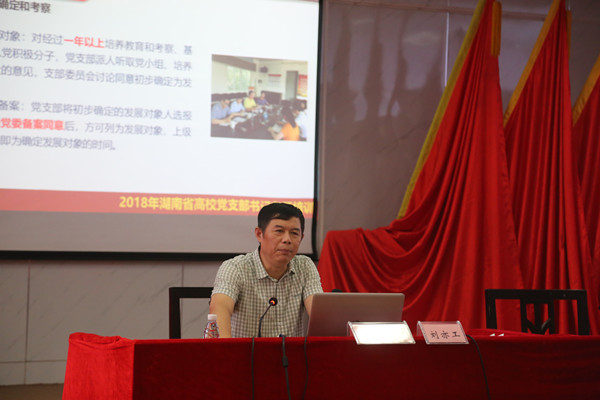 中南大学组织部副部长罗永忠教授为学员们作了题为《怎样当好新时代高校党支部书记》的首场辅导报告,着重从充分加强认识党支部建设的重要意义、全面落实新时代高校基层党建的主要任务、准确把握高校基层党支部定位和党支部书记的职责、努力争做合格的高校党支部书记等四个方面为大家进行了阐述和讲解。衡阳师范学院党委副书记刘福江和湖南理工学院党委委员、副院长刘亦工分别为学员作了题为《高校基层党支部的设置标准化、组织生活正常化建设》和《高校基层党支部的管理服务精细化、工作制度体系化、阵地建设规范化建设》的辅导报告。