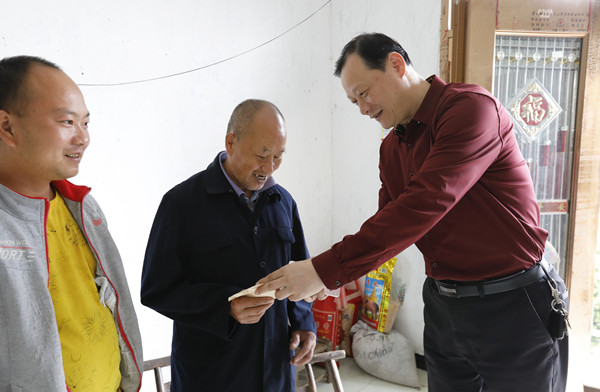 图为白晋湘书记慰问对口帮扶贫困户梁国强