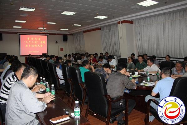 根据省委教育工委和省教育厅的总体部署,5月22日下午,我校在齐鲁大楼六楼会议室组织召开“三严三实”专题教育视频大会。校党委书记游俊在会上以“领导干部要自觉践行‘三严三实’”为题,为全校处级以上干部讲专题党课,就此拉开我校“三严三实”专题教育的帷幕。副校长龙先琼主持会议。张家界校区同步召开视频会议。