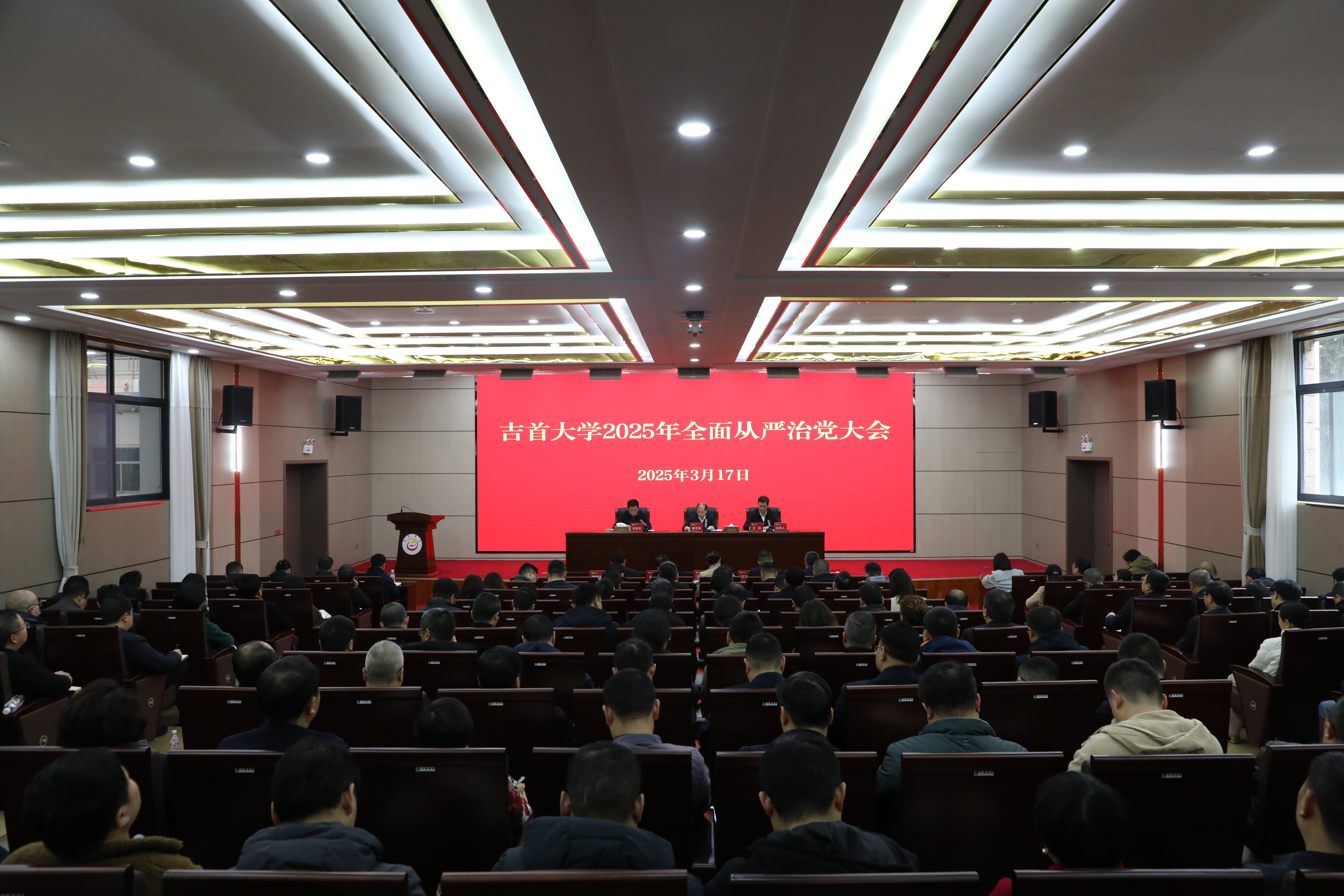 本网讯(戚攀攀)3月17日上午,学校在砂子坳校区图书馆学术报告厅召开2025年全面从严治党大会。校党委书记廖志坤出席会议并讲话,党委委员、纪委书记、驻校监察专员刘启定作工作报告,党委副书记王绯主持会议。全体在校校领导、党委委员出席会议,全体纪委委员、中层干部,各二级党组织纪检委员,纪委、监察专员办全体人员参加会议。