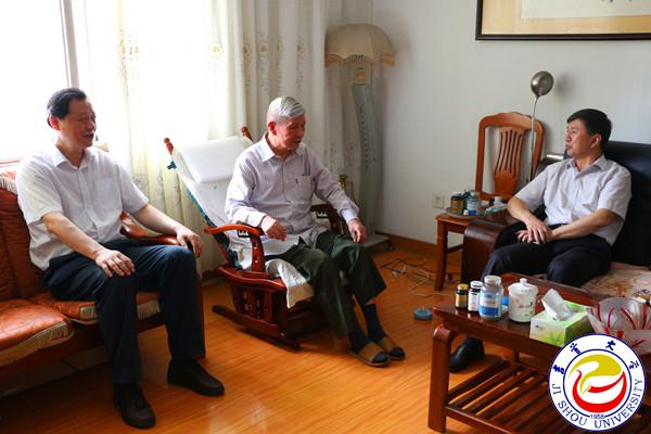 本网讯(学生记者 武景)6月30日上午,在建党95周年来临之际,校党委书记游俊、校长白晋湘、副校长钟海平率组织部、离退处负责人一行走访慰问了我校的老党员同志,并为他们带去节日的问候和慰问金。