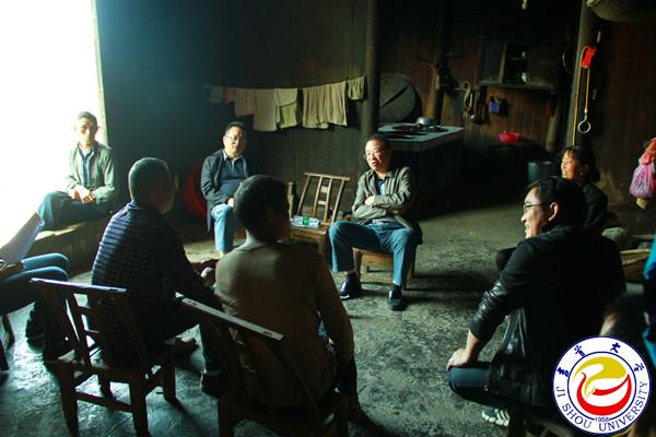 入村后,黎奇升一行来到联团村村部与帮扶对象见面进行座谈交流。黎奇升在听取贫困户基本情况介绍后作了讲话,寄语贫困户一要充分相信党和政府,扶贫工作得到全党上下及各级政府的空前重视,帮扶力度前所未有,大家要坚定信心跟党走。二要充分相信自身脱贫前景,联团村虽然地处偏远,生产落后,但只要科学规划,充分利用好各类资源,在村支两委的带领下,主动作为,一定能早日脱贫致富。三要充分相信吉首大学的真心帮扶,学校会依托自身知识、人才、科技、教育等优势,在智力、物力、人力上全力帮扶,共同携手奔小康。