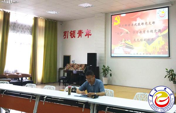 图为龙先琼副校长上专题党课