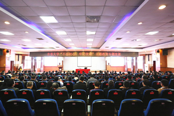 10月18日上午,根据“不忘初心、牢记使命”主题教育安排,校党委副书记、校长廖志坤在砂子坳校区讲授了一堂题为《深入学习领会习近平新时代中国特色社会主义思想蕴含的思想方法和工作方法》的党课。校党政领导班子成员、全校副处级及以上干部、吉首校区各党支部书记聆听专题党课。党课由校党委书记白晋湘主持。